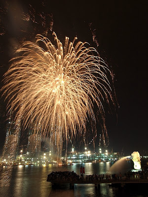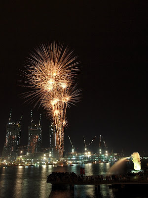 A firework show for the National Day Parade 2009 preview in Singapore on 18 July 2009.