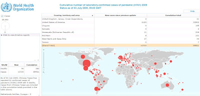This is an interactive website on the status of the h1n1 situation in the world. Can you locate where Singapore is? Note that the status is as of 3rd July 2009.